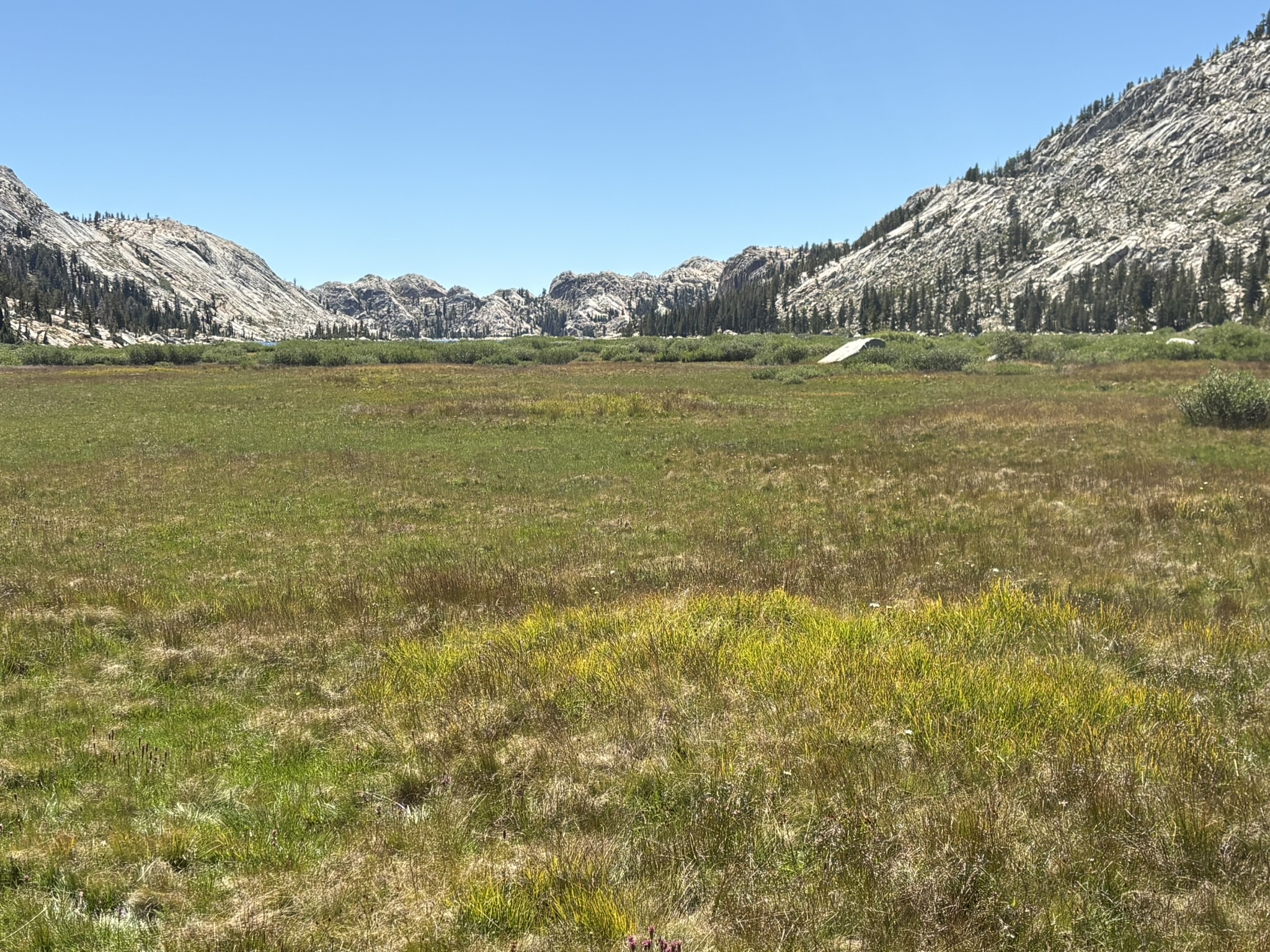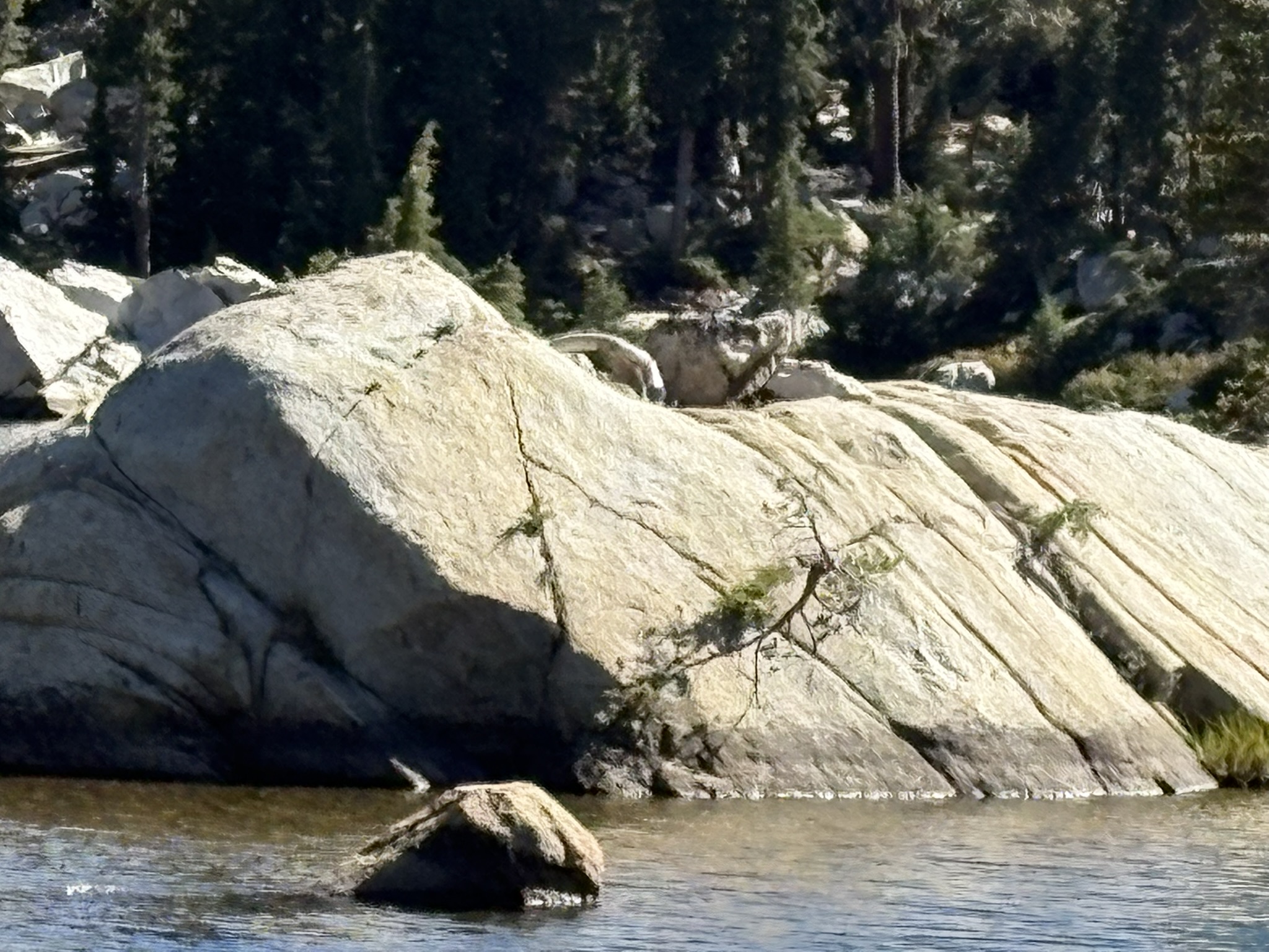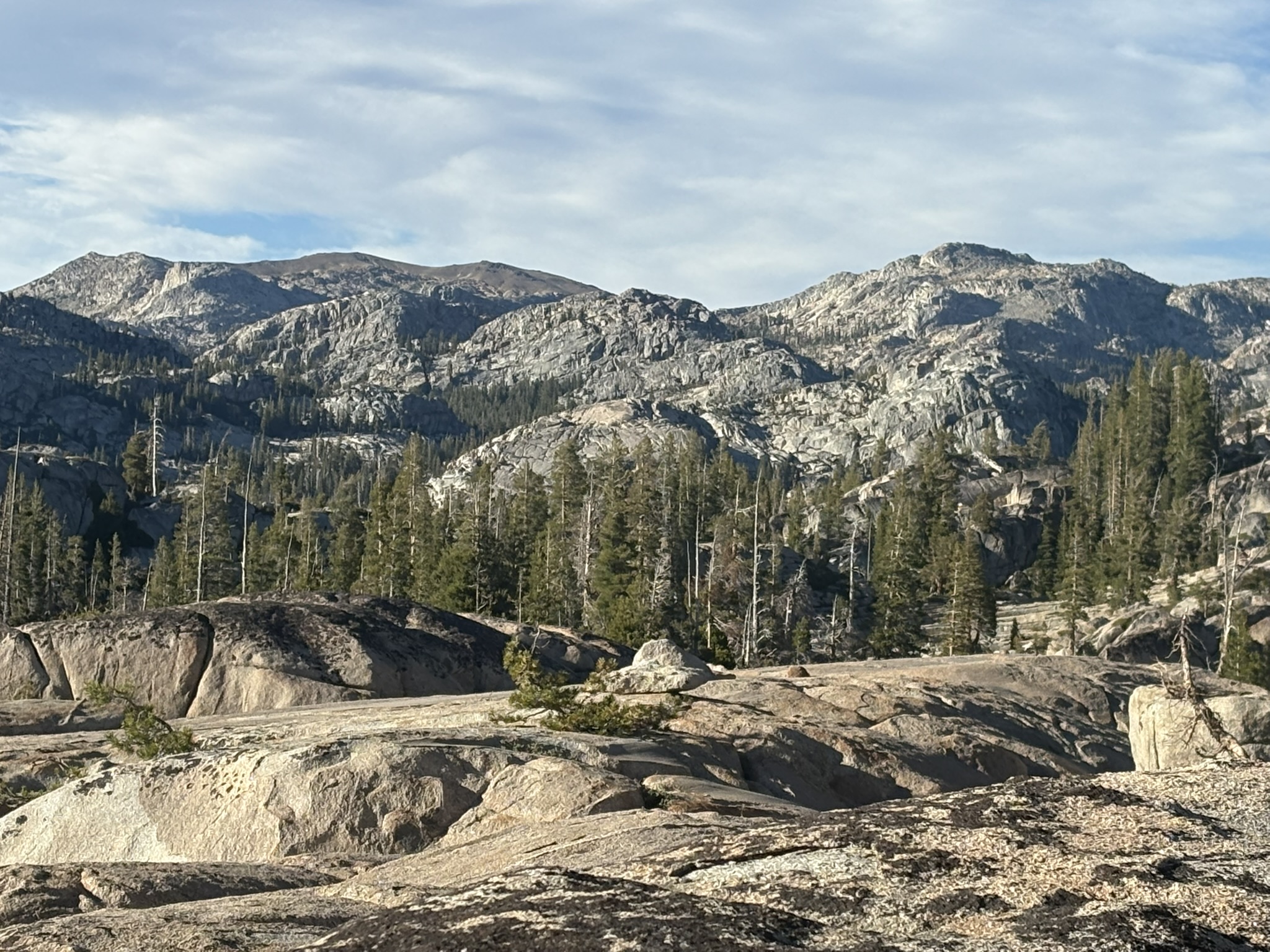 We climbed over granite steps, granite slabs polished by glacial activity, massive granite boulders and we camped at lakes bordered by granite faces, projecting into the sky. This area of the Sierras was carved out millions of years ago leaving granite polished smooth by glacial activity, deep valleys, green grassy meadows with meandering creeks and numerous crystal clear, deep blue arctic lakes. The lakes are surrounded by tall granite faces and massive boulders. The night sky did not disappoint but gave us an impressive display of the galaxies as there were no clouds.