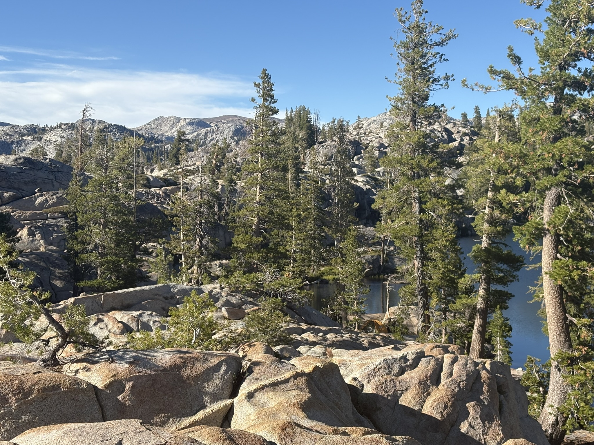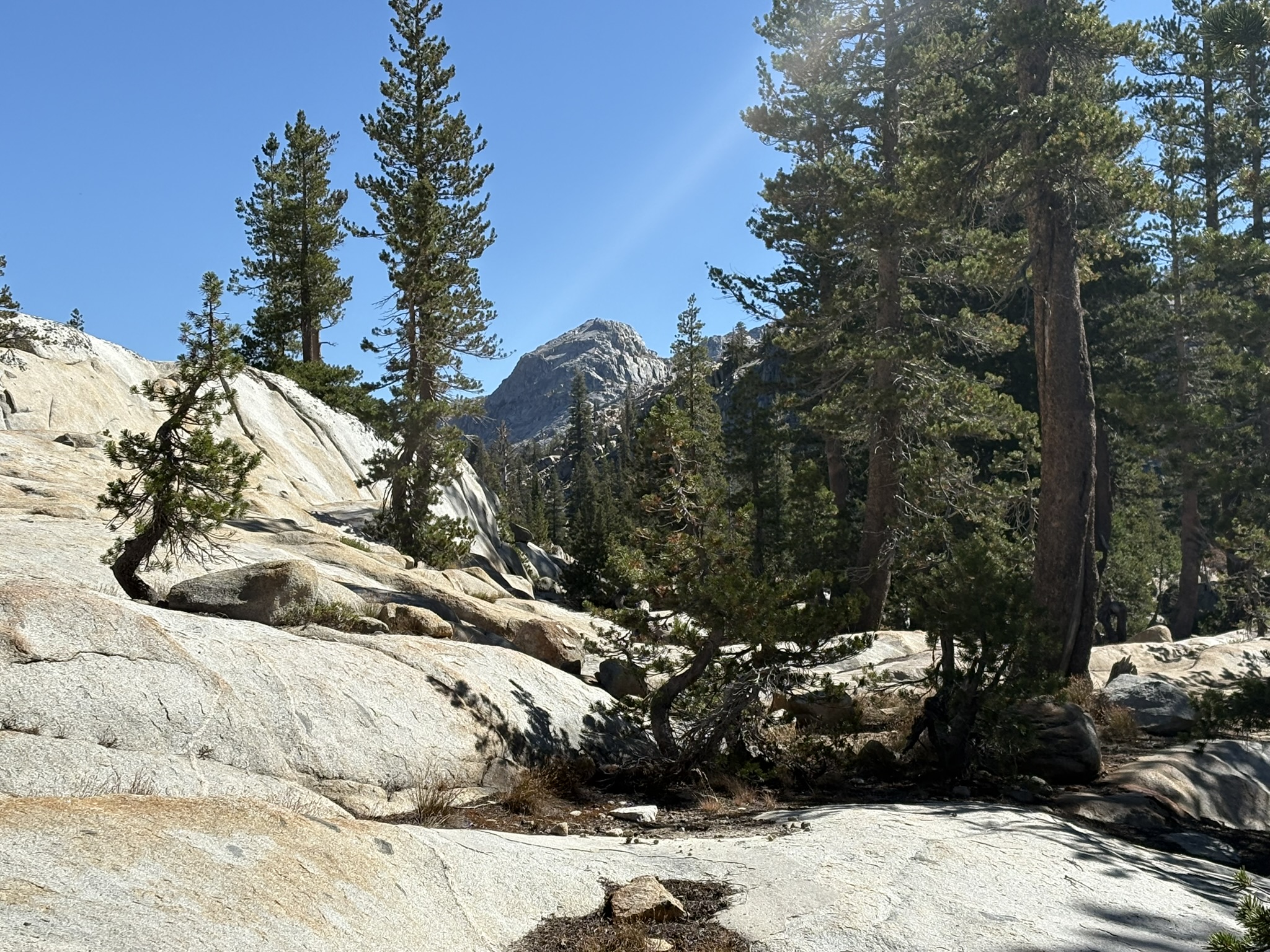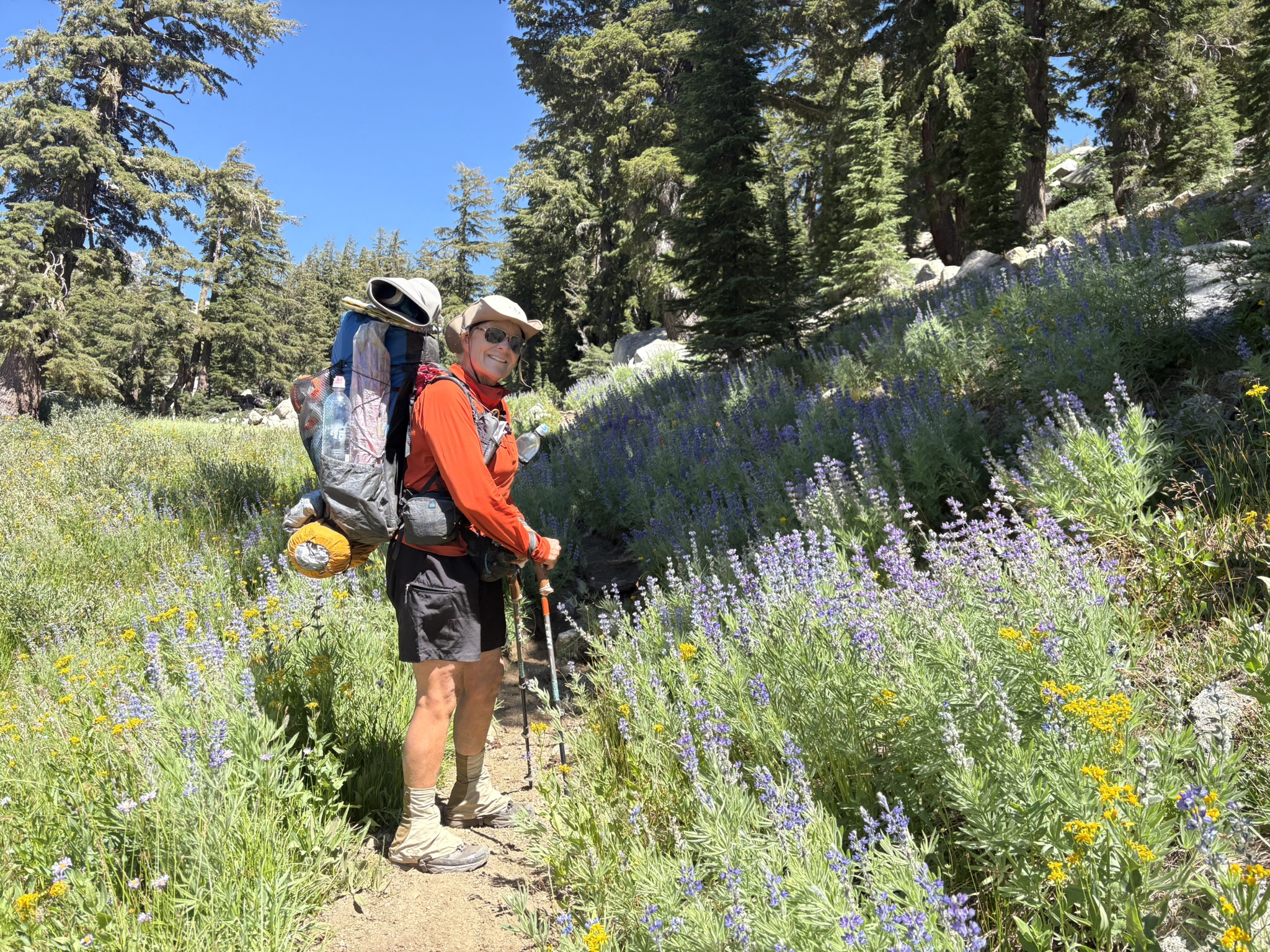 We climbed over granite steps, granite slabs polished by glacial activity, massive granite boulders and we camped at lakes bordered by granite faces, projecting into the sky. This area of the Sierras was carved out millions of years ago leaving granite polished smooth by glacial activity, deep valleys, green grassy meadows with meandering creeks and numerous crystal clear, deep blue arctic lakes. The lakes are surrounded by tall granite faces and massive boulders. The night sky did not disappoint but gave us an impressive display of the galaxies as there were no clouds.