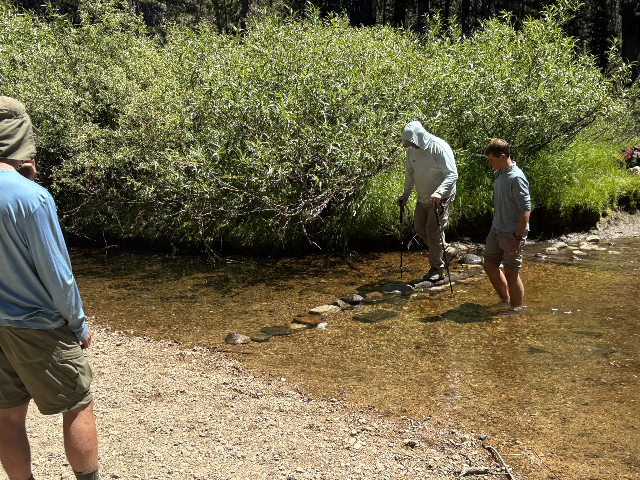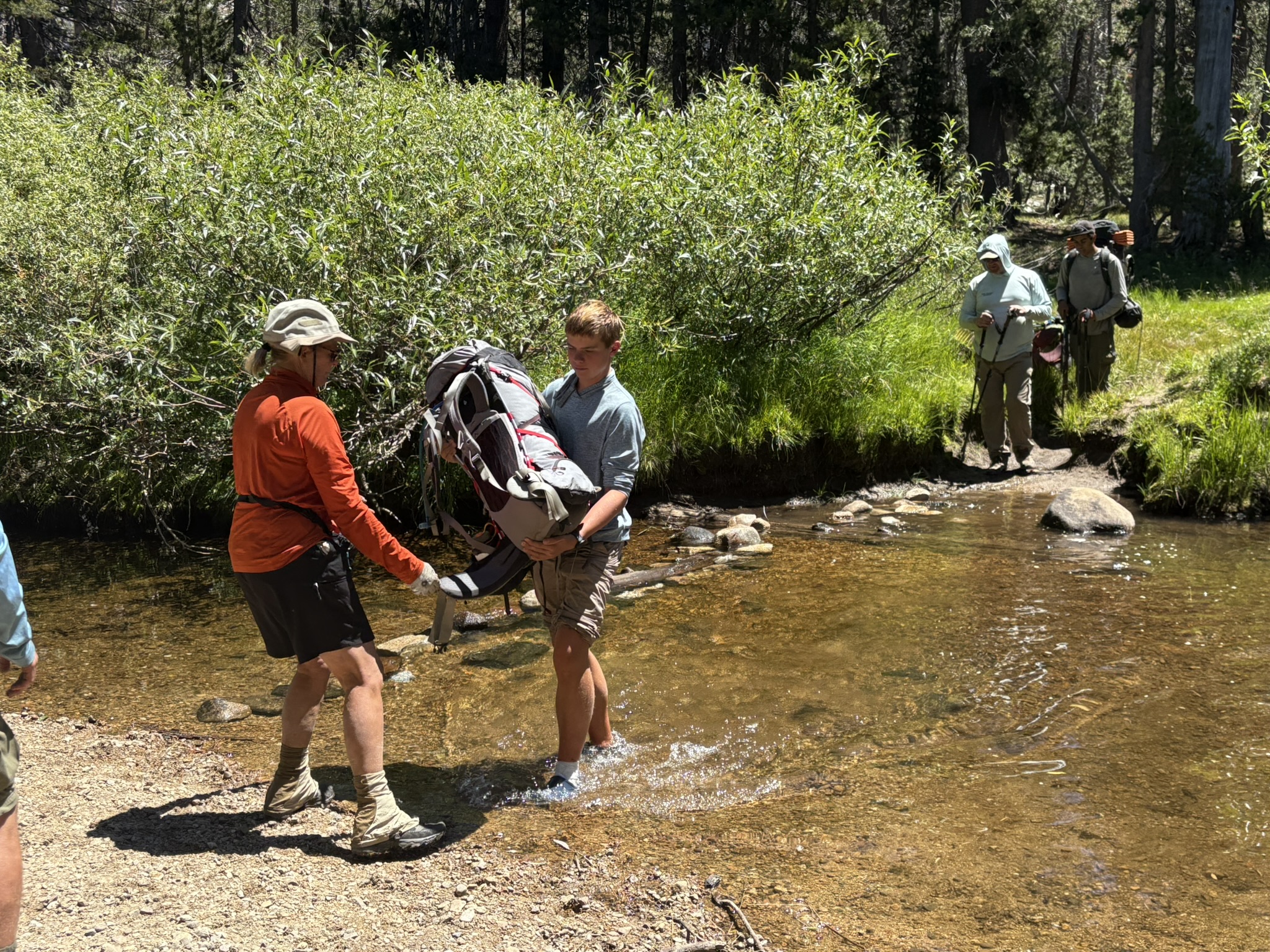 Though it was pretty difficult, our preparation ahead of the trek paid off as we not only hiked up to eleven and a half miles in one day, the ascent into Toejam Lake on the 5 th day was over 2,000 feet. Some of our backpacks were up to 42 pounds and some of the stronger scouts were able to bear some of the extra weight for the less experienced. The trails were well maintained, and in the meadows, we traveled over deep tracks worn in the grass from years of boots passing by. The camp spots were great, in the evening, we sat around and reflected on the accomplishments of the day. Though we caught a few fish they were not on the meal plan and some thought the best meal of the trip was the chicken teriyaki. It was an amazing trip camping and so much fun to be with the other scouts, learning new skills such as map reading and water sanitation, but also having an abundance of time to swim in the lakes and try our hand at fishing.